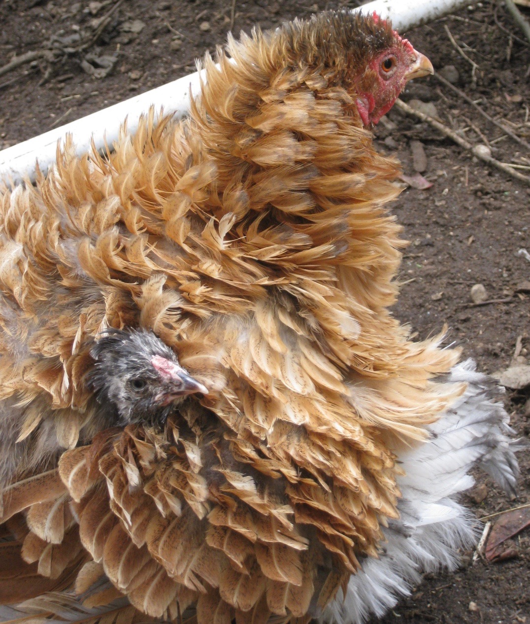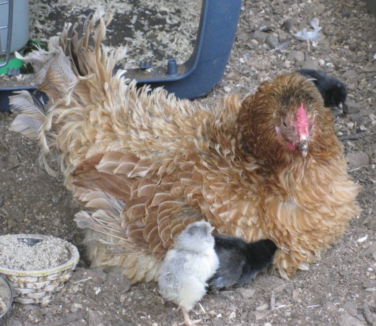 And then she went broody again! Her timing was impeccable as I had a clutch of partially incubated eggs that had been abandoned by another hen and I needed a broody hen to get them to hatch day. Three chicks hatched – only two survived – including a frizzle cockerel who was her son. Mango stayed with them till they were 9 weeks old, until little Harry and Hermione went off to their new home – a houseful of Harry Potter fans. She would have kept them for longer if I had let her.