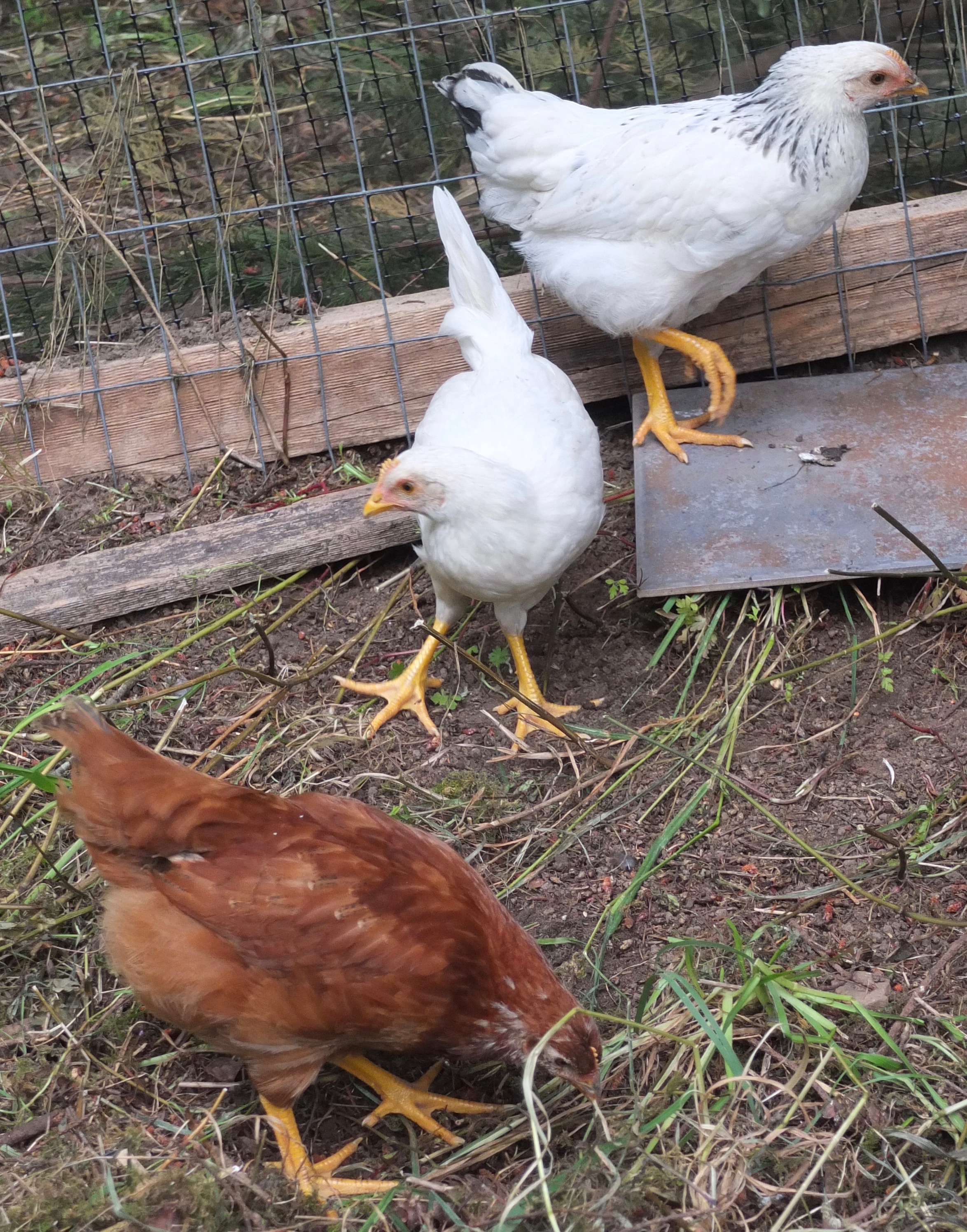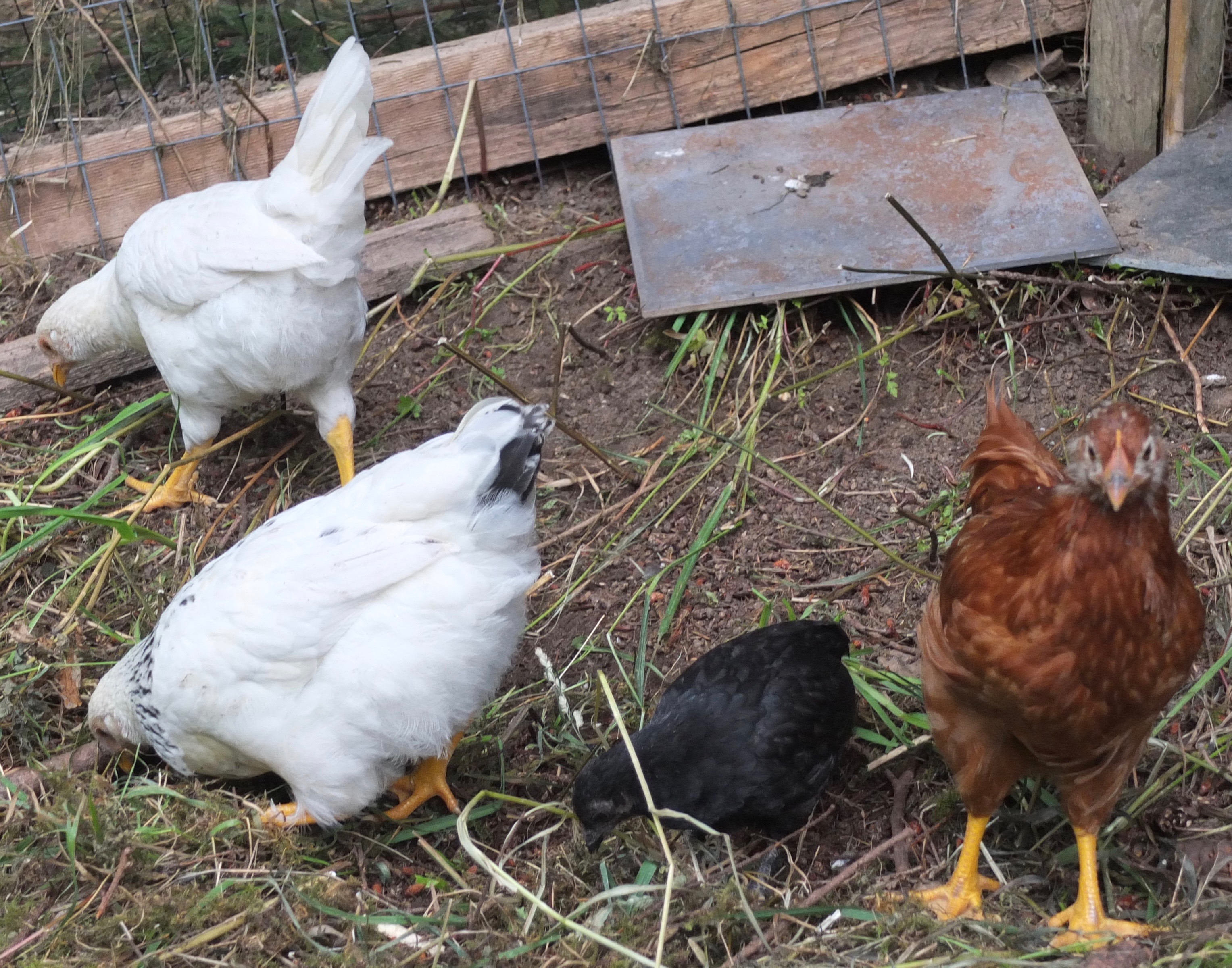 Five days into chicken keeping and there’s not much to report just yet. She’s got what she hopes are all pullets:  Columbian Rock, White Leghorn, Rhode Island Red and a bantam and is planning to add an Orpington. She asked me a few questions about what was normal and what to expect. Cathy’s still in the new chicken mum stage and is just getting used to behaviours like watching the pecking order play out. I assured her that although it looked like harassment it was quite gentle by chicken standards and everything would work itself out.