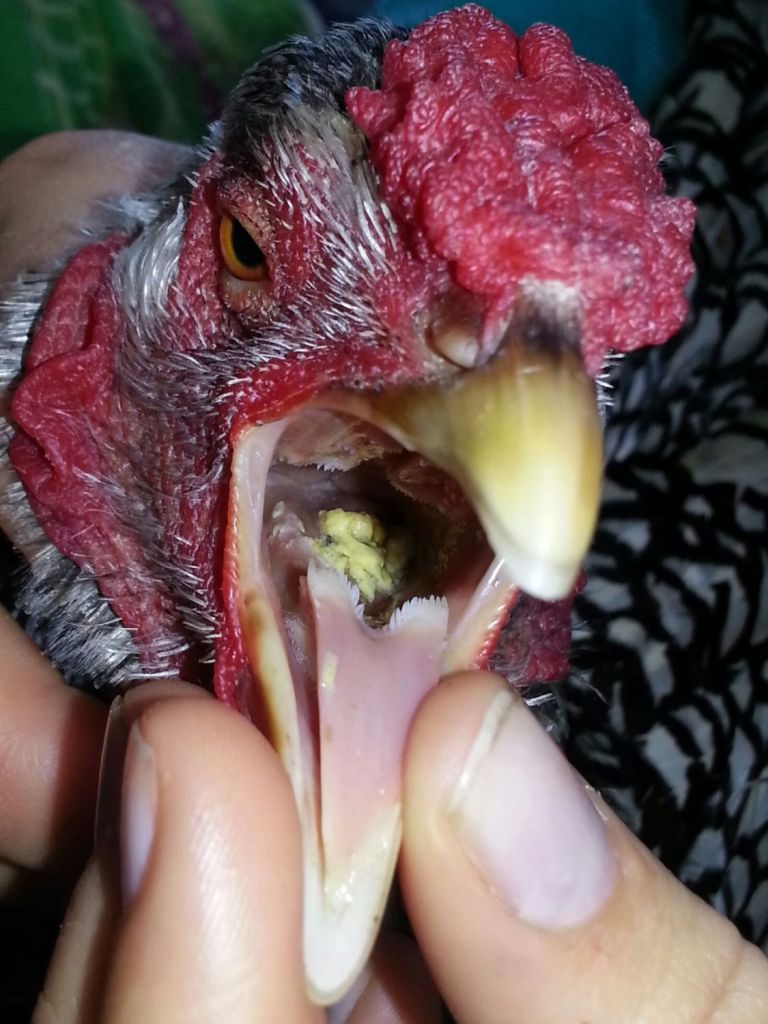Avian Trichomonosis, often called canker (and not to be confused with ear canker) is a disease caused by one-celled protozoa, mostly infecting young birds. It primarily affects the chicken’s upper gastrointestinal system and causes them to develop lesions, or cankers, inside the mouth and the esophagus. As the disease progresses, the lesions get bigger and often interfere with the chicken’s ability to eat and drink. In severe cases, the lesions might block the esophagus causing suffocation.