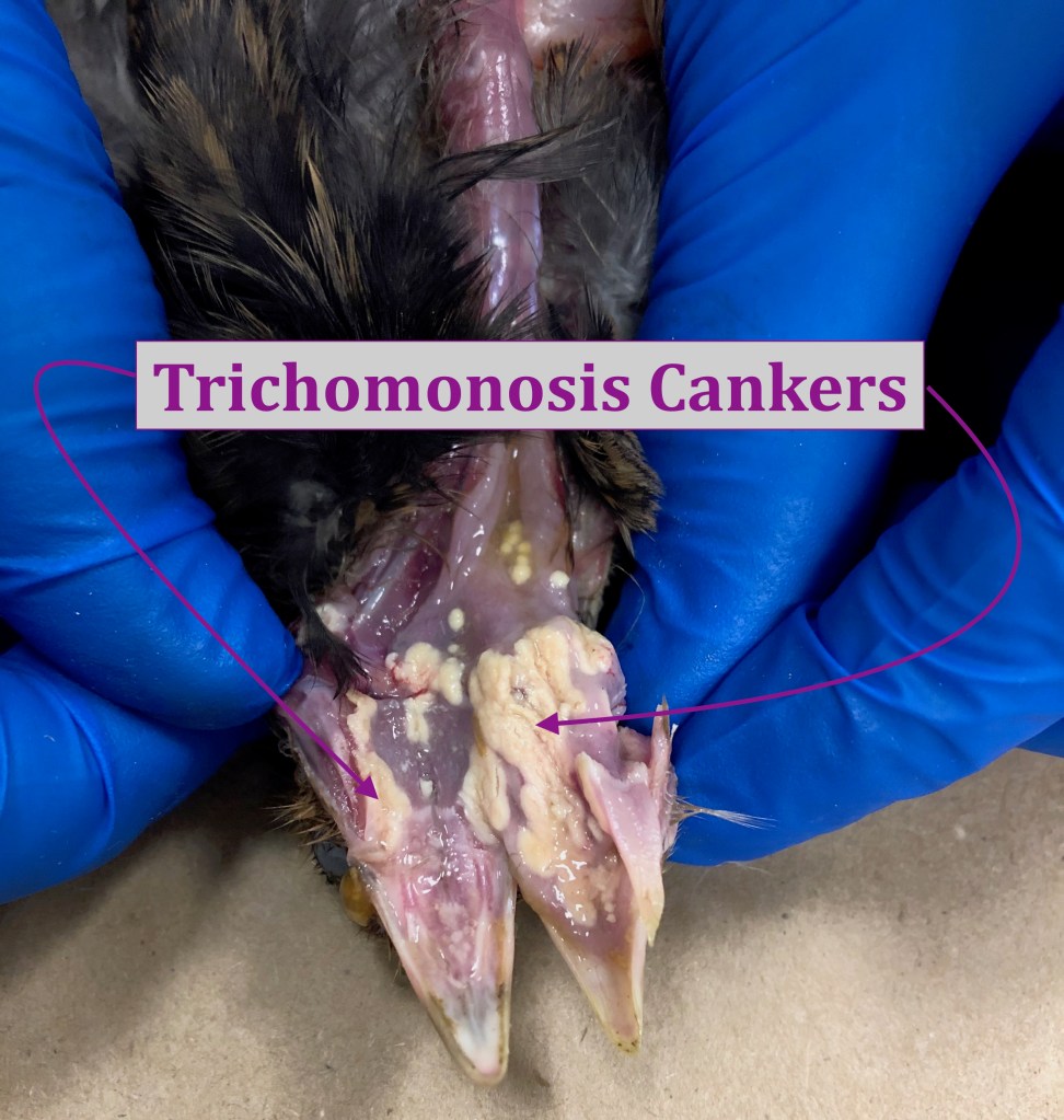 Avian Trichomonosis, often called canker (and not to be confused with ear canker) is a disease caused by one-celled protozoa, mostly affecting young birds. It primarily affects the chicken’s upper gastrointestinal system and causes them to develop lesions, or cankers, inside the mouth and the esophagus. As the disease progresses, the lesions get bigger and often interfere with the chicken’s ability to eat and drink. In severe cases, the lesions might block the esophagus causing suffocation. Read more here.
