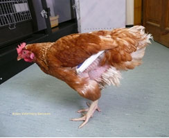 Some breeds of laying hens are susceptible to fractures in part due to selective breeding for increased egg laying: more eggs laid over a longer period of time. The push to lay more eggs on a consistent basis causes progressive bone loss from a hen’s skeleton as calcium is mobilized for egg shell formation. A laying hen’s need for calcium can exceed her body reserves by about thirty times. Keel bone (breastbone) injuries are commonly seen in commercial and high production layers.