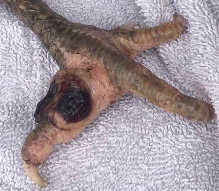 It is caused by consistent, uneven, or excessive pressure on the bottom of the bird’s foot, combined with conditions that lead to the breakdown in the outer skin of the foot. Scrapes or cuts in the footpads allow bacteria in the soil or coop to infect the inner tissues. Think of it like pressure ulcers or bedsores in people.