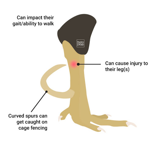 Long or curled nails can force the toes into an unnatural position while walking, making the toes curl inward. Over time, the toes can become permanently deformed causing the chicken pain and reducing their mobility.