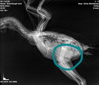 November 18: Jack continued to have problems with his balance and gait. He was taken to a state licensed Avian Veterinarian, who recommended they take x-rays. Unfortunately he was not sedated and panicked during the procedure causing him to die of a ‘stroke’. Michelle feels that he died of stress in his weakened state. Based on the x-rays, it was determined Jack had a mass in his abdomen that was likely compressing a nerve and possibly causing his balance issues.