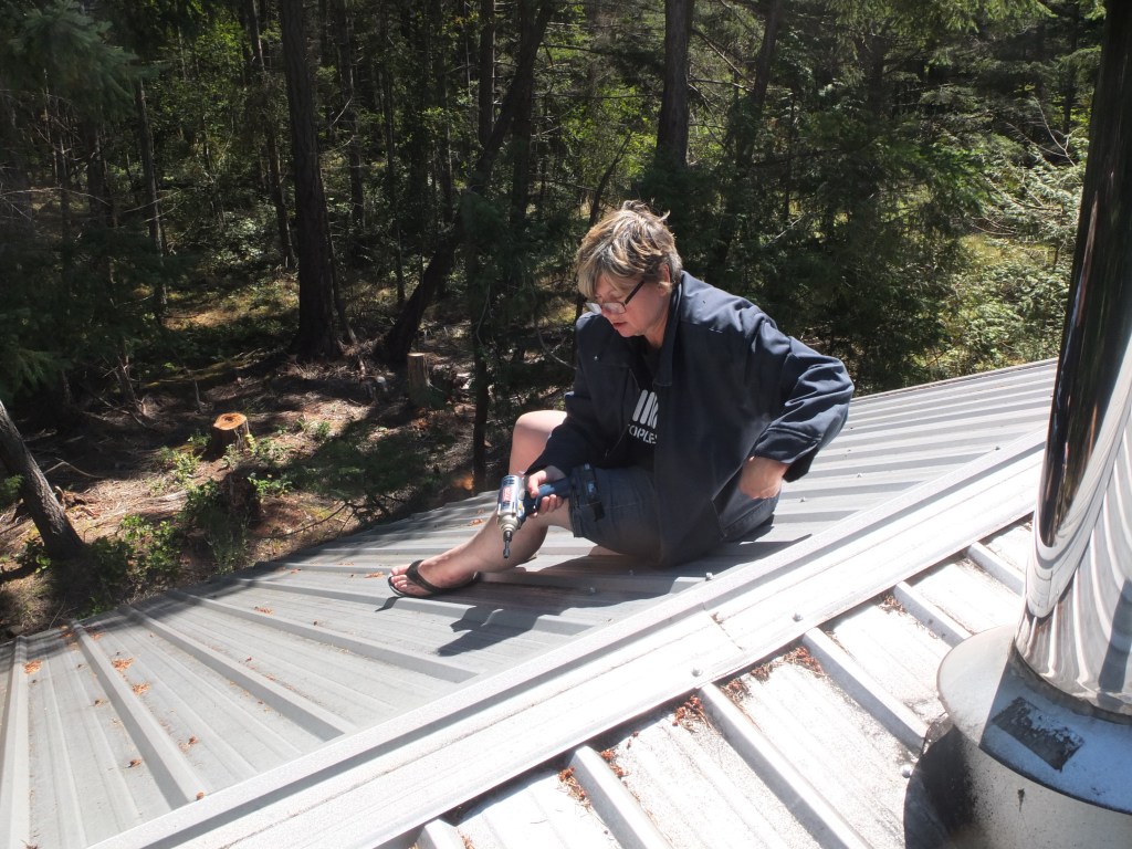 Seeing the roof work reminded me that we also got sheets of tin for free off somebody’s junk pile. We used a little bit on the exterior of the nest boxes for additional predator proofing and a rustic touch. We may add some tin as skirting around the outside of the run too. Not sure yet.