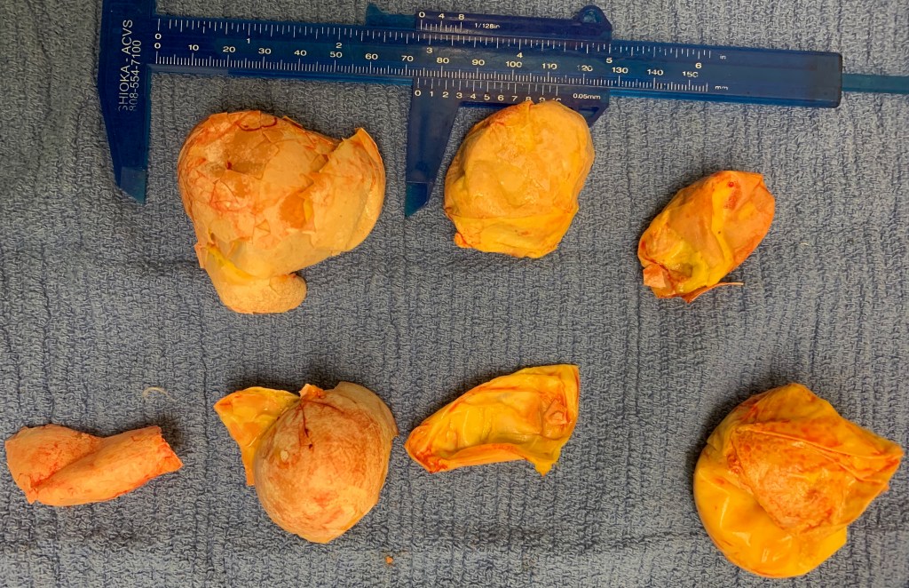 We are unable to remove the ovary because of how close it sits to the major blood vessels, so we removed the entire oviduct from as close as possible to the ovary to as close as possible to the cloaca. Unfortunately we did not take more pictures besides the one posted because we were so focused on the surgery itself and then recovering her. In retrospect it would have been nice to have a few more photos.