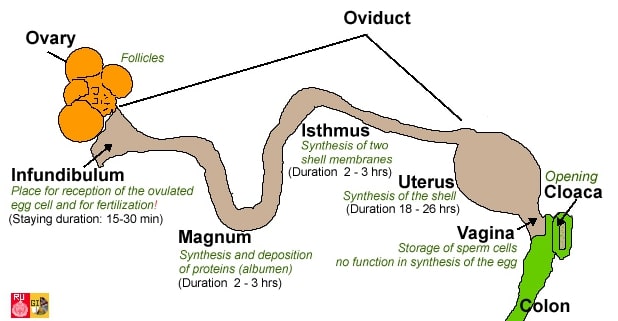 Spaying a hen usually involves the removal of the oviduct rather than the ovaries, which is more risky due to their increased blood supply and close proximity to the aorta. Removal of the oviduct usually prevent the ovary from producing egg follicles, therefore it’s unnecessary to remove them as well.
