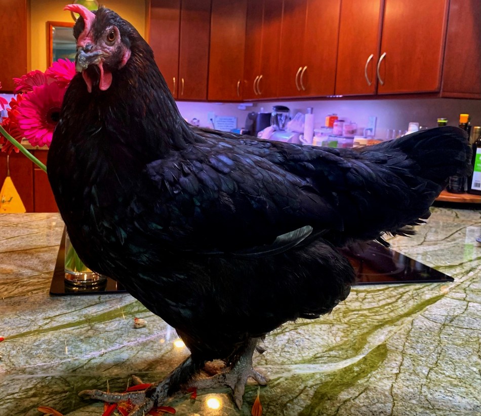 Although this was an expensive and stressful undertaking there was a silver lining. Sheri attributes the positives of this experience as all the things she learned from the vets, including how to tube feed. And the best part is now that Hiwa has fully recovered, despite a history of never wanting to be handled, she has become a lap chicken.