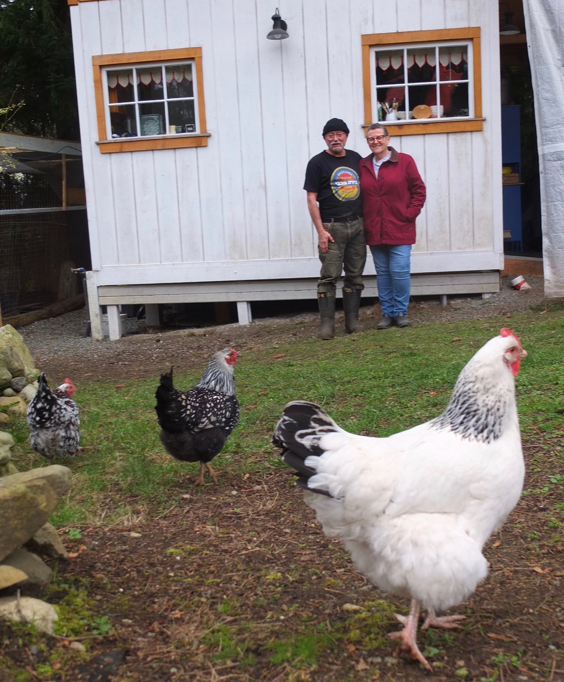 Shortly after I started this blog I began writing about chicken keepers in a series called ‘Having Chickens Is A Great Way To Meet Your Neighbours’. At first it was pretty easy to interview my friends or folks that I knew who had chickens. By the second year, after having done 34 profiles, in my small island community of Gabriola (pop. 4400) my pool started to run dry so I would intermittently post on our local Facebook community bulletin boards trying to connect with new people. Covid 19 has been a catalyst for many to get chickens and, for me, it’s a whole new source to mine. Sara responded to one of my posts saying she was interested in participating.