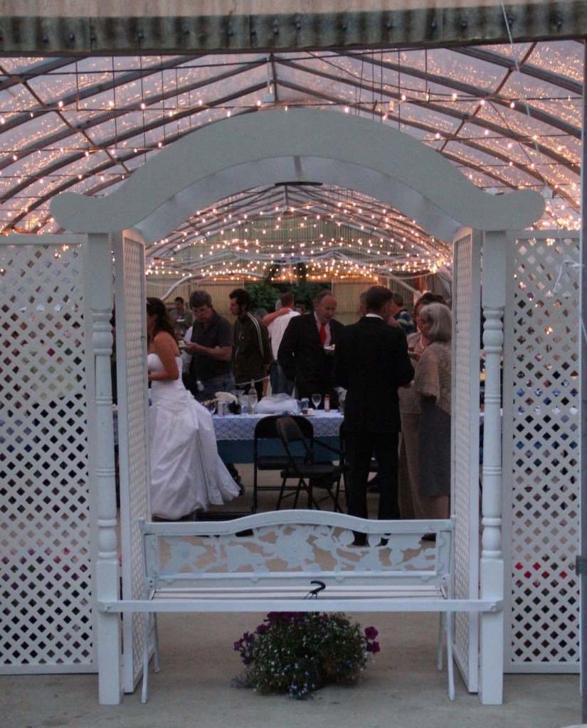 We toured the two family properties, which are connected by a driveway. The tenants next door are both families with kids and are friends with Auralee, Tyler and their kids. The greenhouse is a little worse for wear; after 20 years, the poly covering was pulled down by a recent windstorm, but the frame is still standing and calling for a new project. It’s where, as newlyweds, they held the wedding party with the rafters decked out with twinkle lights.