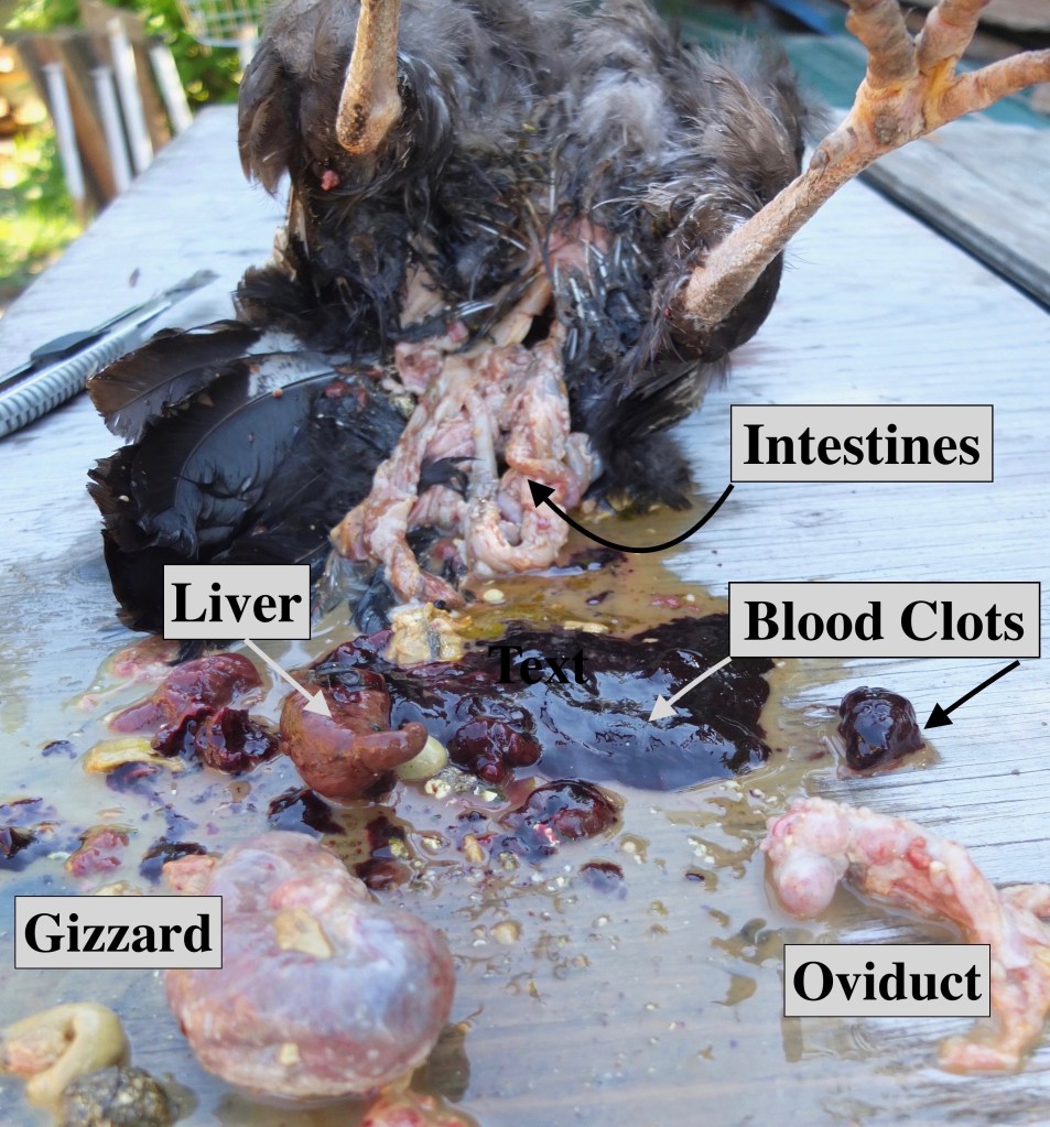 I took a number of photos and posted them online, which resulted in a variety of opinions. I met up recently with Dr Vicki Bowes, Avian Vet/Pathologist to ask for her diagnosis. Of course, she would have appreciated a more orderly necropsy, with each organ photographed in situ and then again, once it was removed.