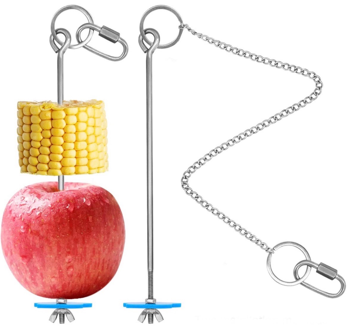 Day 1: Ashley had installed a bird kebob –a metal skewer of fruits and veggies for her birds to peck at – in her pen. There were no issues for several months until she noticed that the nuts had come loose and were missing.
