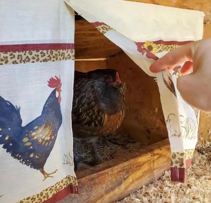 - Place nest boxes in a darkened area or install curtains to reduce visibility inside the nest box.
