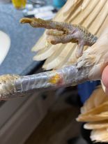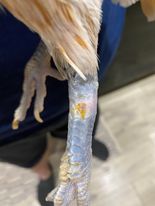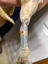 I bought her as part of a trio and looking back I wish I had purchased all the birds that breeder had for sale. Although both hens had issues with their leg bands Latte was the only one with an embedded band that needed immediate care. The other hen had the same type of spiral band which had just started causing constriction issues on her leg. I was able to remove that one as it hadn’t damaged the skin yet. The rooster and other hen went to an amazing home with a breeder that I know will take excellent care of them but I kept Latte, who I absolutely adore.”