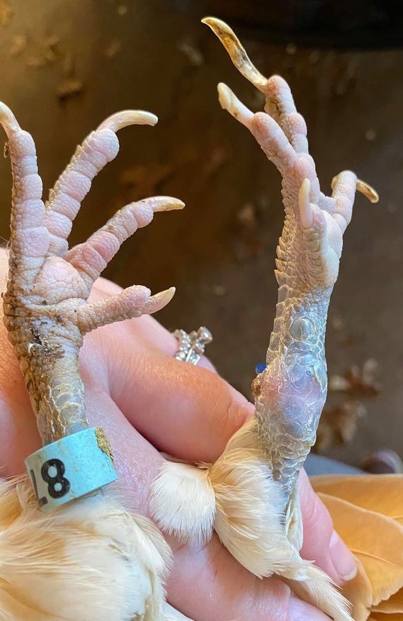 The following is the story of Kimberly’s hen whose leg band became overgrown resulting in both pain and difficulty walking.