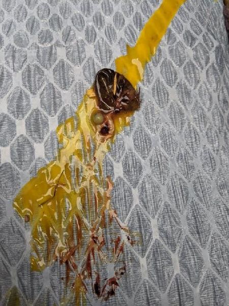 “I’m stumped. This has lasted exactly two weeks. This chick was raised from hatch by a hen until quarantined 10 days ago. Online suggestions were that it was a pecking injury or sinus infection, but this morning these things popped right out. It isn’t puss filled, it’s solid skin. As soon as they came out, she started fighting to get out of my hands when before she was very calm and weak.” – Desiree Richards