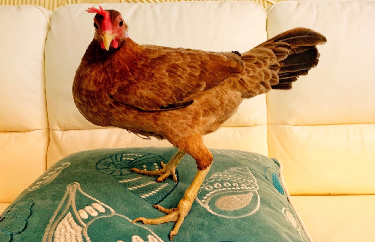 A Bitchin’ Chickens’ follower, Sheri, is limited by local Oahu bylaws to keeping only two chickens (which seems a bit restrictive), but has many tales of her interactions with the feral flock around her townhouse complex.