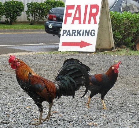 There is an upside of feral chickens – some folks love them. In many places they are a tourist attraction and are the catalyst of other business offshoots (e.g. T-shirts, ceramics, art). One of my chicken keeping friends, a self-described chicken addict, got married in Hawaii and managed to work feral chickens into her wedding party and photos.