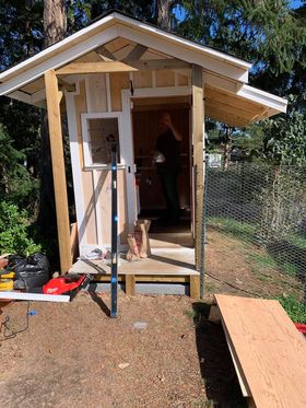 David, who turned out to be really handy, opted to leave the shed intact and build his own coop using the platform as a base, which he started on the next day. Over the next couple of weekends, he worked away with Megan sending me progress reports. I sent them a link to my post on coop designs for some pointers.
