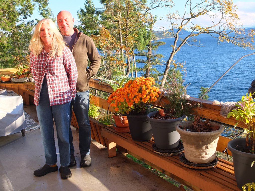 While she arrived here 17 months ago, David works remotely from Gabriola a few days a week, but still has to be in Vancouver for much of his work. They have a condo in Vancouver were he stays when in town.