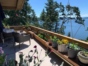 Megan had a long-time dream of moving to a Gulf Island. She might have been close when, at 22, she owned a lot on Mayne Island, but sold it before ever living there. The impetus for the move here was a rescue dog with behavioural issues. Despite all their best efforts and attempts at rehabilitation the dog was reactive. She and daughter, Lily, thought getting out of the city might do the trick. Their house atop a cliff overlooking the ocean was purchased with the plan that Megan would move here with the dog in tow and David would follow full-time when he retires in a few months. Unfortunately the geographic cure was a failure: the dog bit someone and had to be euthanized.