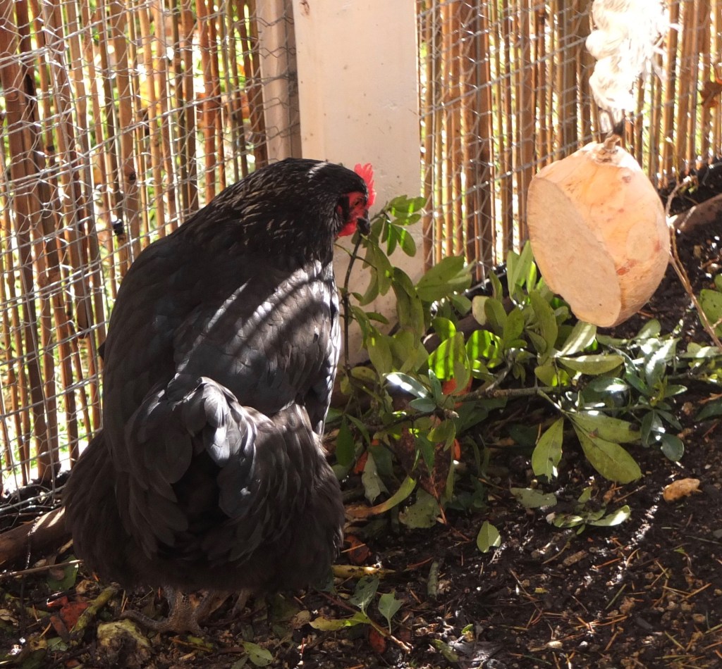 Their introduction to backyard chickens began with a bit of drama. The first bird to arrive was a lone hen named Alice. They put her into the prefab coop for quarantine. Unfortunately the next day, Megan turned her foot coming down the stairs and thinking it was broken decided to head to the hospital. Just before they left, David went to check on the little hen and before they knew it Alice had literally flown the coop, bolting out at lightning speed and making a beeline for the bushes. Four hours later, after a lot of stress and sweat, with David running around with his newly purchased fishing net the hen was back, not in the little coop, but the big one. When they looked outside she’d made it in there all by herself.