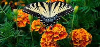 The marigolds that we buy as seeds or bedding plants from garden centres belong to a large variety of flowering annuals in the genus Tagete (Aster family). They range from tiny to towering at 3’ tall with flowers that cover the spectrum of yellows and oranges. Don’t confuse them with Pot Marigolds, which are also in the aster family, but in the genus Calendula.