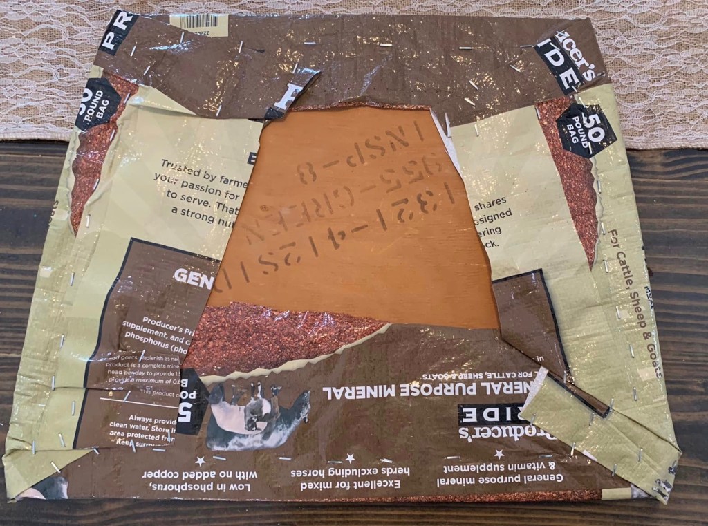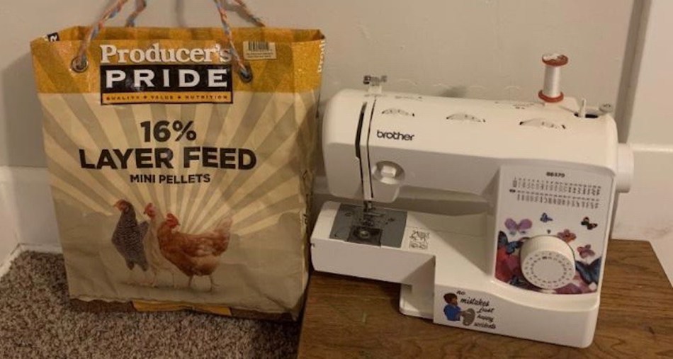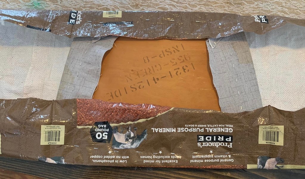 The feed bag project started because they were piling up in the barn and Austin was going to throw them away. When I found out they weren’t biodegradable I researched ways to reuse them. I’m the type of person who always cuts the plastic rings off soda can packaging so birds or other animals won’t get tangled in them.