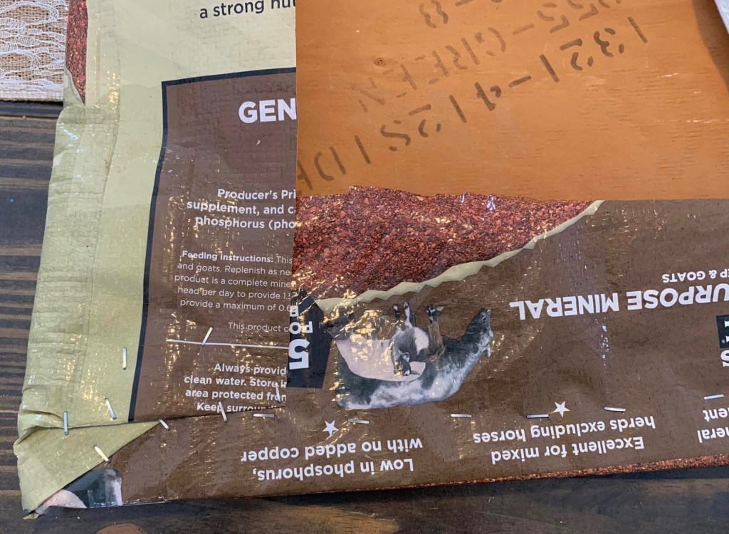 The feed bags I use are all from our animals: chickens, ducks, goats and rabbits.