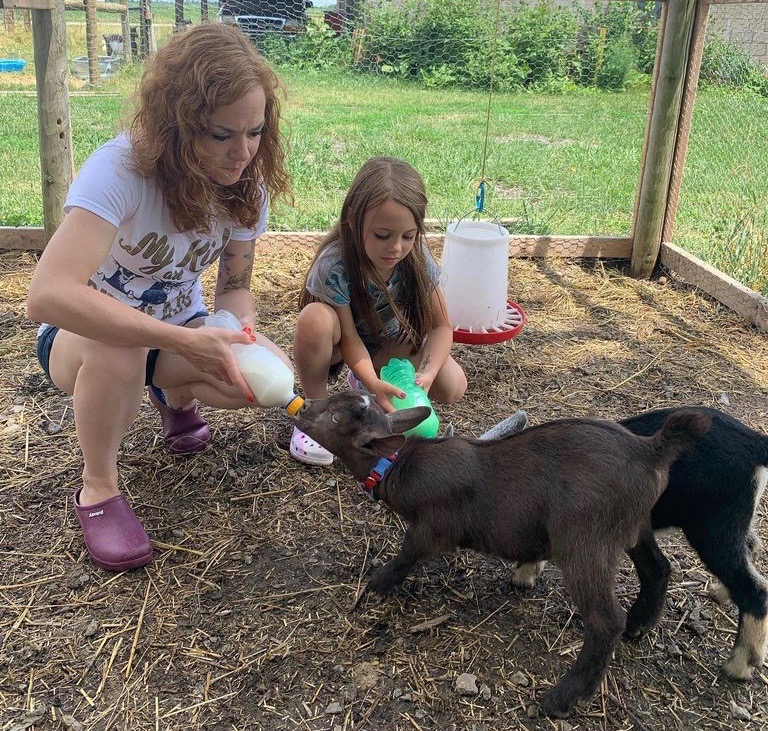 Austin and I live on our 2.9 acre A&E Family Farm, which we established in 2020. Our first farm animals were 10 older chickens from our neighbours, which were housed in our barn until he built a coop and run. We now have over 20 chickens, 9 ducks, 8 goats, 12 rabbits, 4 cats, a dog, and a snake. We sell chicken and duck eggs and I make goat milk soap, bath salts, beard butter, beard oil, liquid soaps and candles.