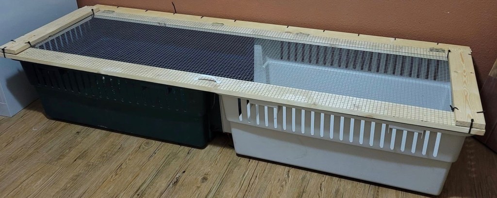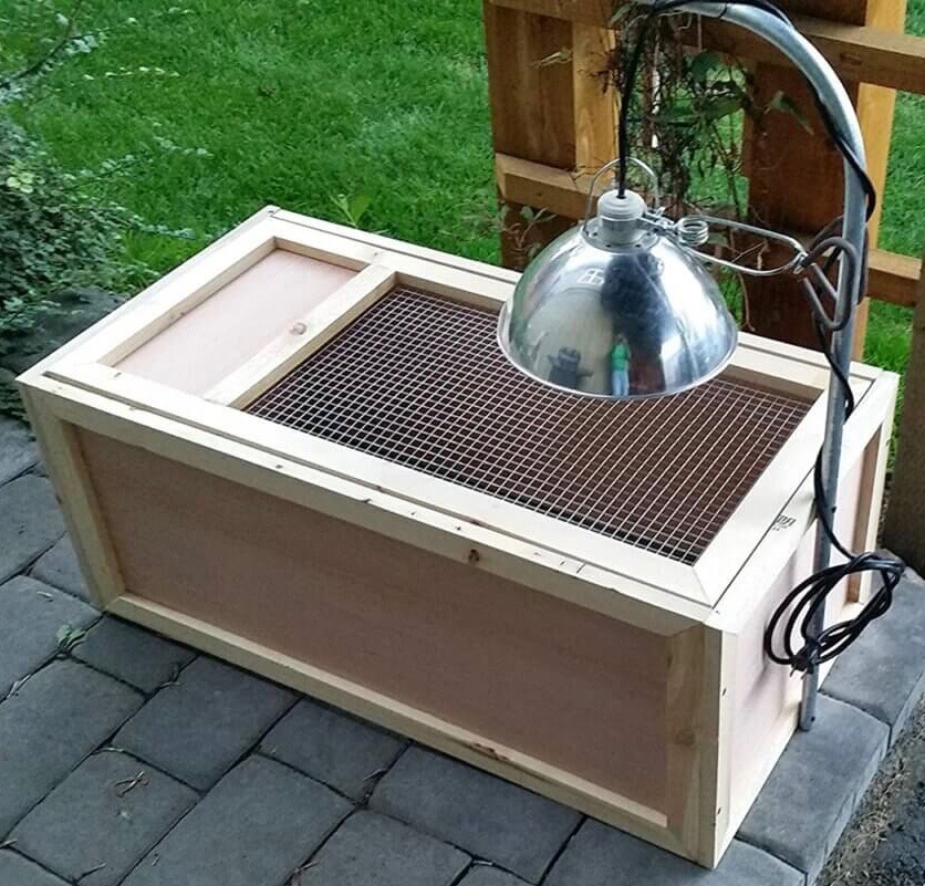 • There needs to be a temperature controlled end (starting at 35C/95F on week 1 and reducing the temperature by 3C/5F each week thereafter) under the heat source and a cooler area.