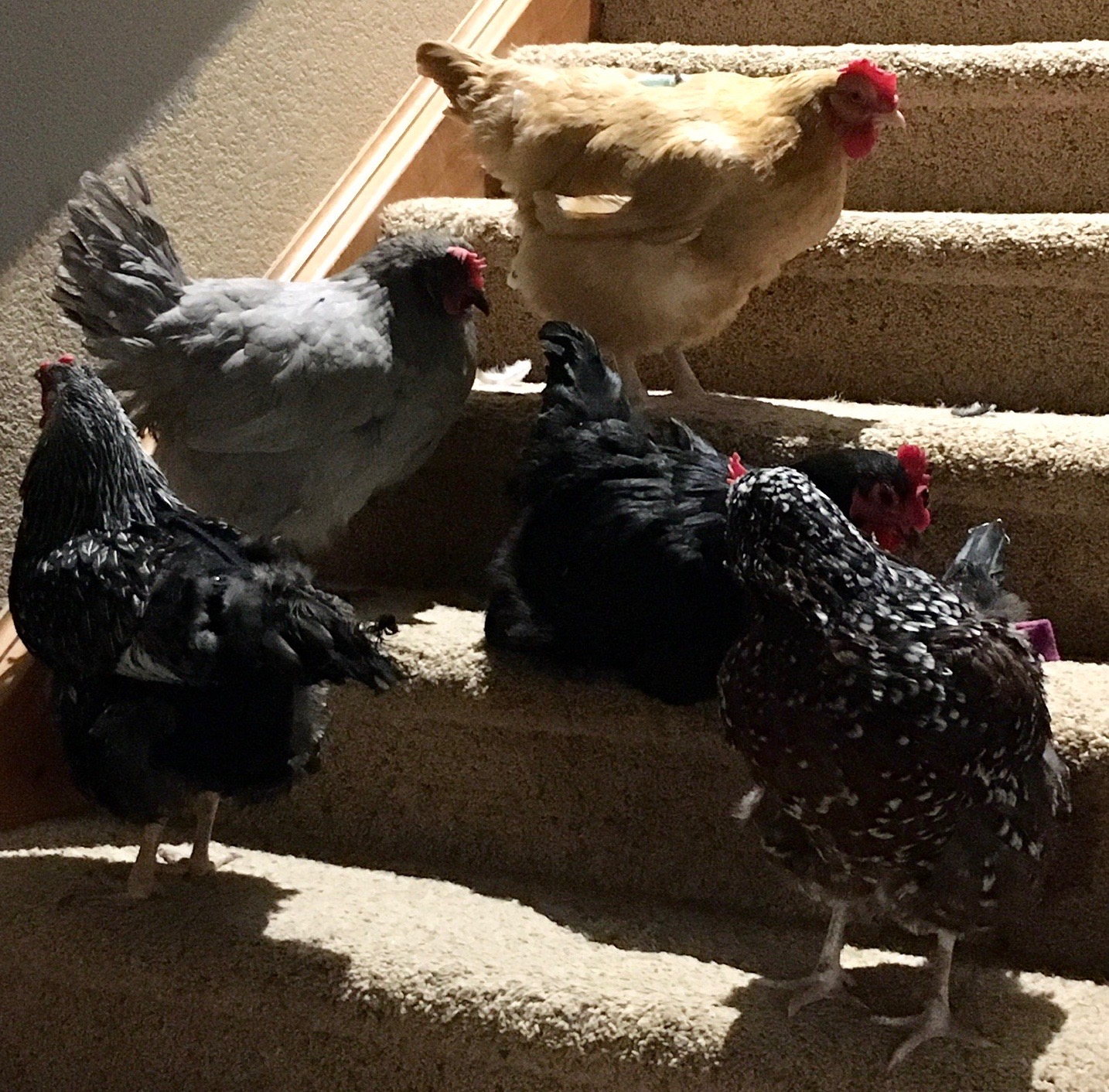 The reasons for having house chickens seem to run the gamut as well. Some birds are low in the pecking order and get bullied; some came into the house during quarantine or illness and never returned to a flock, while others have a disability like blindness or mobility issues. Sometimes the owners themselves have physical limitations so keeping a small number of chickens indoors as pets is easier than maintaining an outdoor coop.