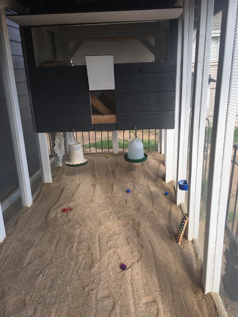 Before the threat of avian influenza, I tried to let them have as much time outside as possible. Even though I have several birds, they are broken into mini-flocks that either can’t, or won’t, get along with each other. I utilized our predator-proof enclosed run when I was able to and the birds could stay outside unmonitored for long periods of time. I was only able to put one flock out at a time in the run (they didn’t fight if closely monitored and if there was ample space). I would take everyone in the fenced in backyard and work on the garden or sit in a lawn chair while they were outside. Overhead predators are a huge threat in our area, so I didn’t dare attempt free-ranging them without close and constant monitoring.