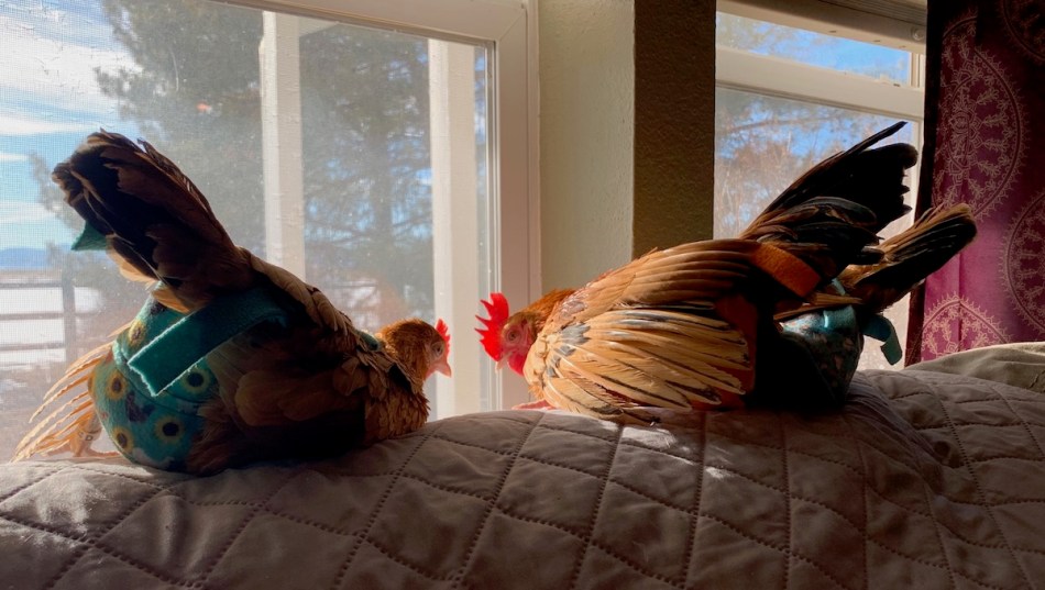 I’ve never had a house chicken. Occasionally I’ve brought a sick or injured bird inside while they were recuperating, but that’s the extent of my experience. I belong to a number of online chicken groups and folks often post about their indoor birds. Their experiences seem to vary widely from having just one bird to a whole flock; from keeping birds predominantly outside while allowing them to come in for visits to chickens who have lived their whole lives never having touched the ground.