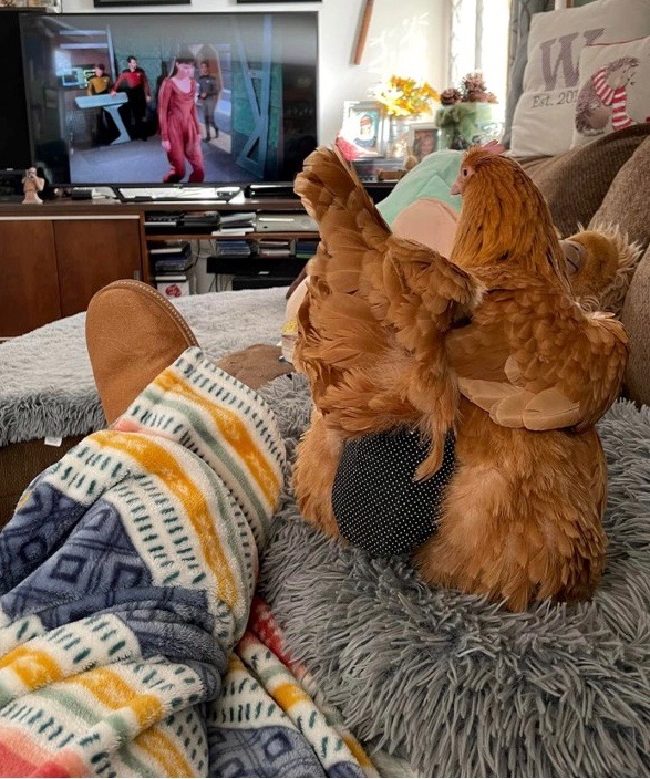 I’ve never had a house chicken. Occasionally I’ve brought a sick or injured bird inside while they were recuperating, but that’s the extent of my experience. I belong to a number of online chicken groups and folks often post about their indoor birds. Their experiences seem to vary widely from having just one bird to a whole flock; from keeping birds predominantly outside while allowing them to come in for visits to chickens who have lived their whole lives never having touched the ground.