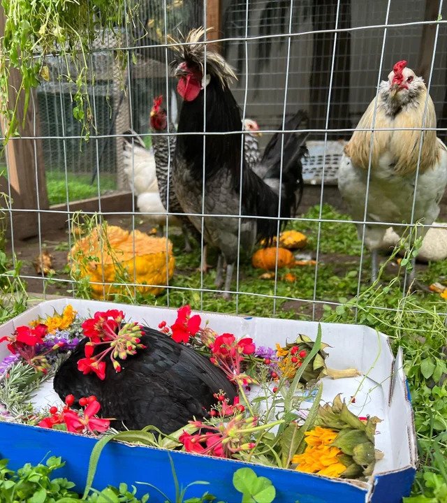 I’ve only written two published obituaries: one for my mother and another for one of my dogs. Celebrating the lives of family, friends and often household pets is not uncommon, but that got me thinking about chickens. I do see folks post in online chicken groups about having a burial service complete with flowers, grave marker and speeches for their lost feathered friend. I know that some folks are dismissive of the emotional attachments we make with chickens, but I think it’s reflective of the very real ways that animals touch our lives.