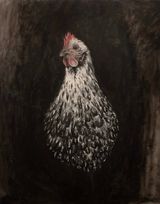 I’ve worked on a series of 45 profiles of chicken keepers called ‘Having Chickens Is A Great Way to Meet Your Neighbours’. This is the launch of another series ‘When Art Meets Chickens’ aimed at showcasing folks who are inspired to incorporate chickens into their art, craft or writing. I’m always delighted to see folks represent chickens in whatever form: baking, painting, fabric and barn quilts, sculpture or stained glass. The folks featured might be professionals or hobbyists. This is not a contest about who does the ‘best’ work, but a celebration of chickens.