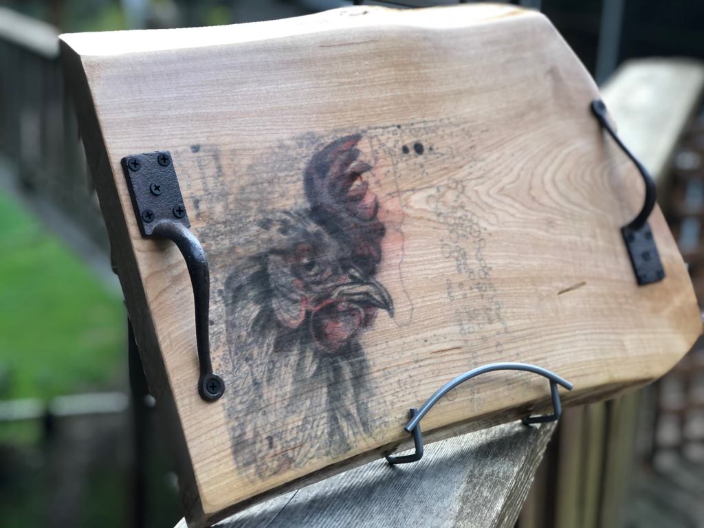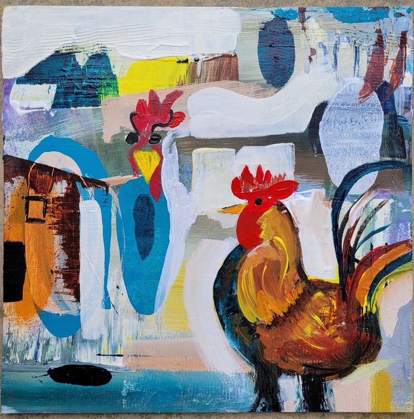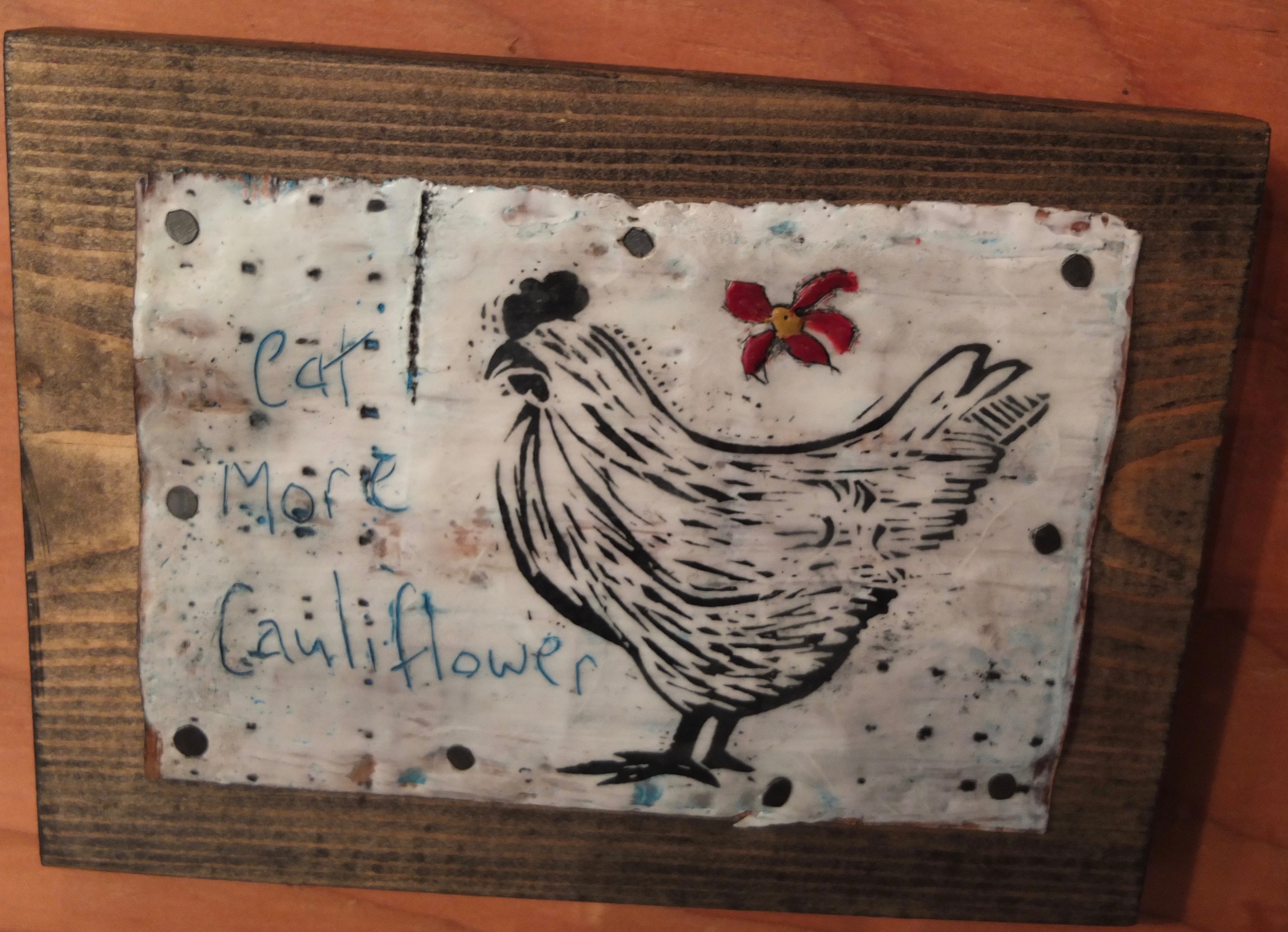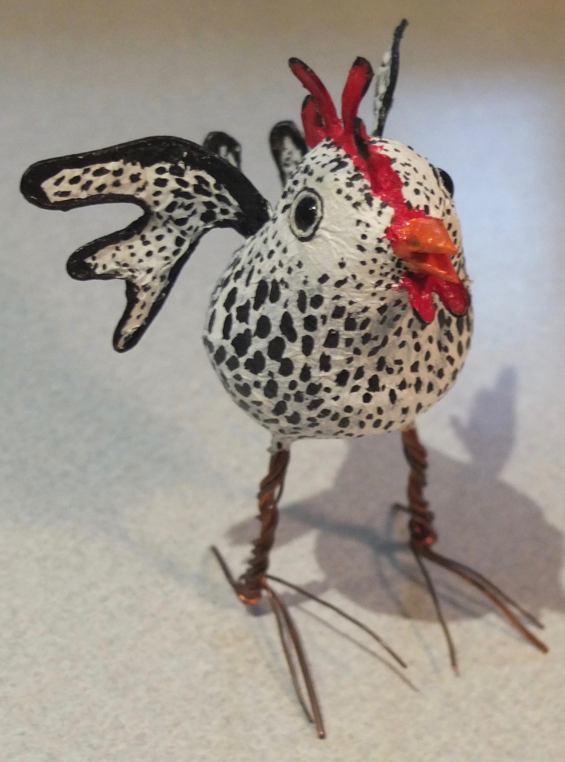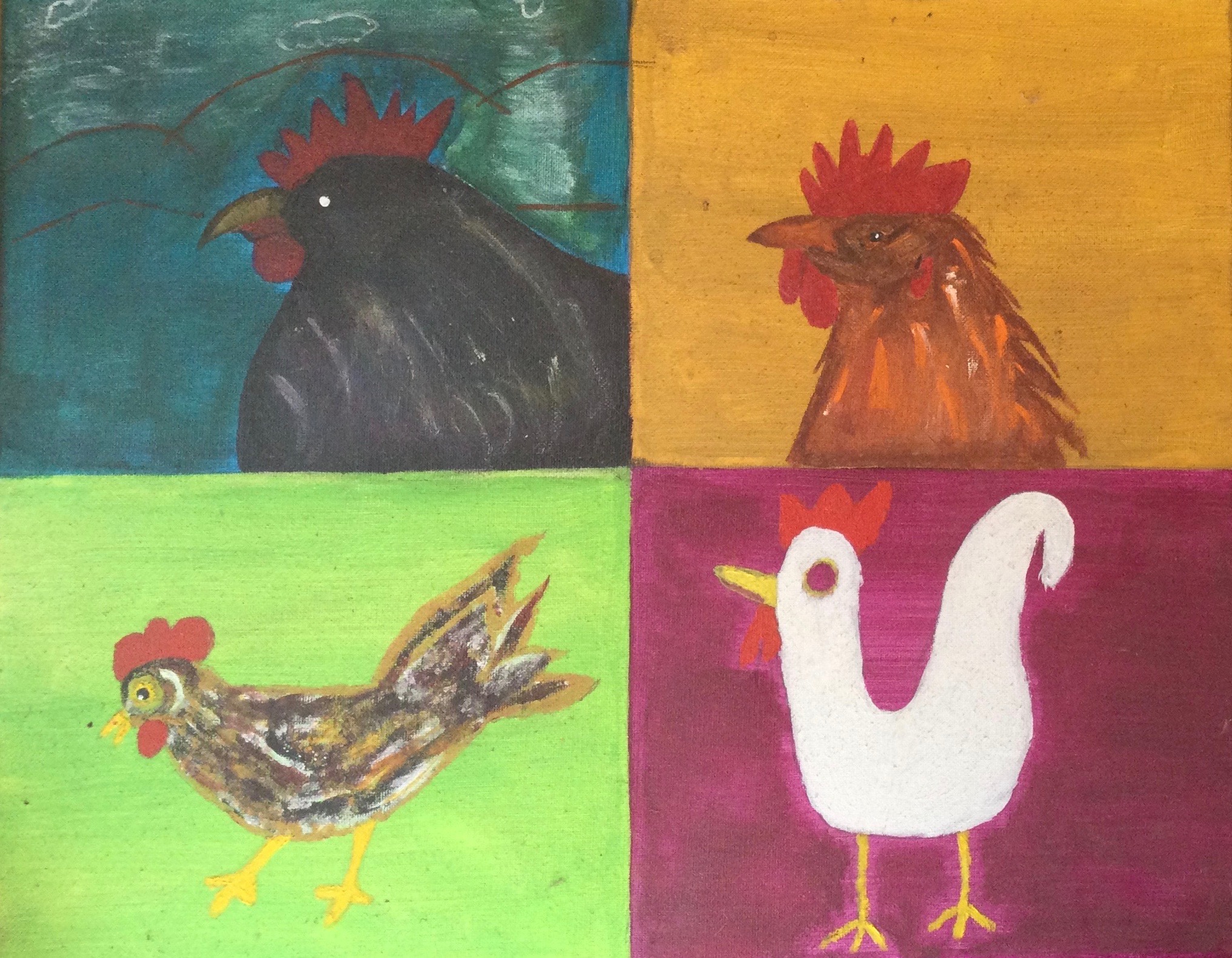 I put a call out to local artists who were inspired to create chicken-related works to submit some samples here and they haven’t disappointed.