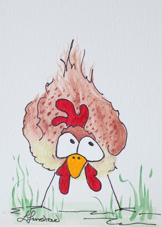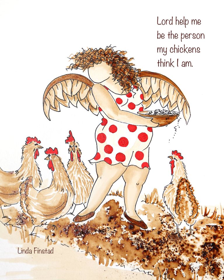 I’ve noticed Linda, a fellow Canadian, post her artwork on occasion in an online chicken group. I checked out her Facebook page and was impressed by the diversity of her craft: photography, watercolour and acrylic paintings, fine art to more whimsical subject matter, colouring books, note cards, and of course, chickens and lots of them.
