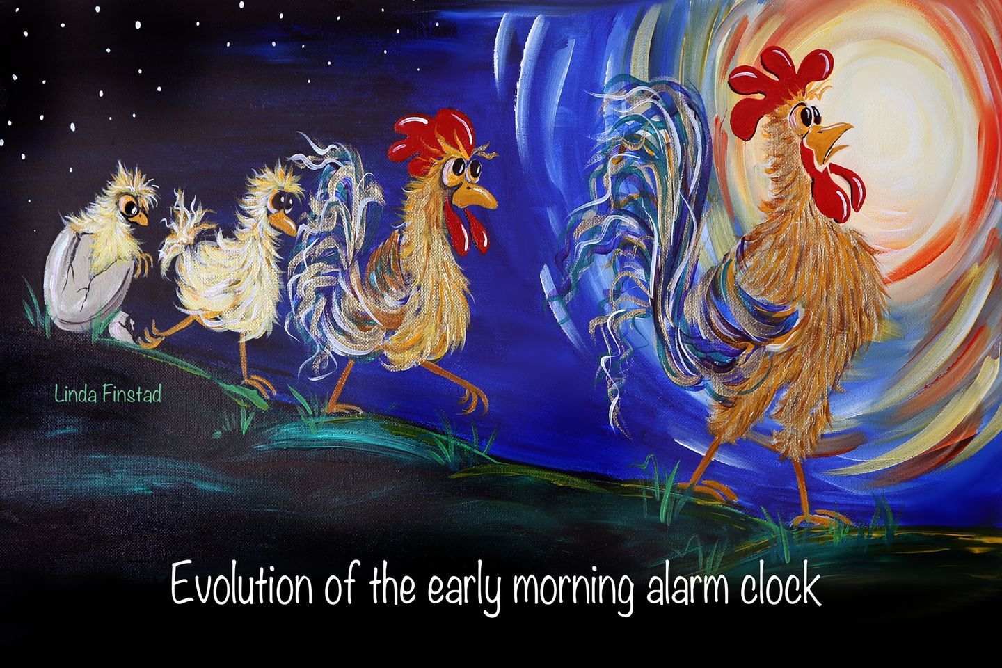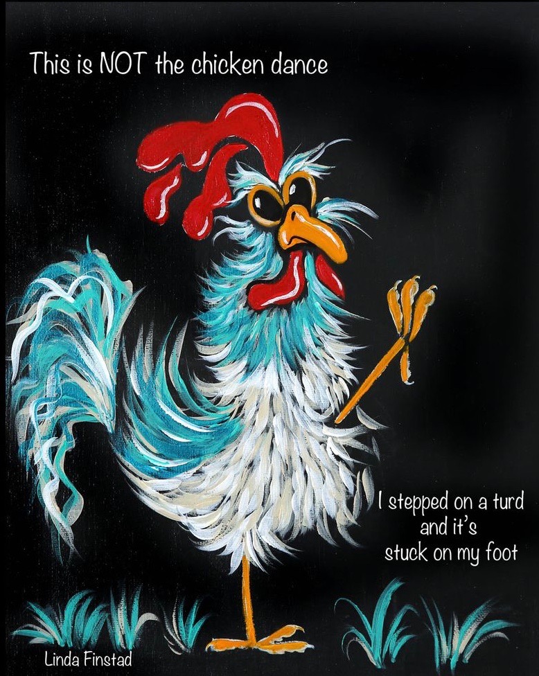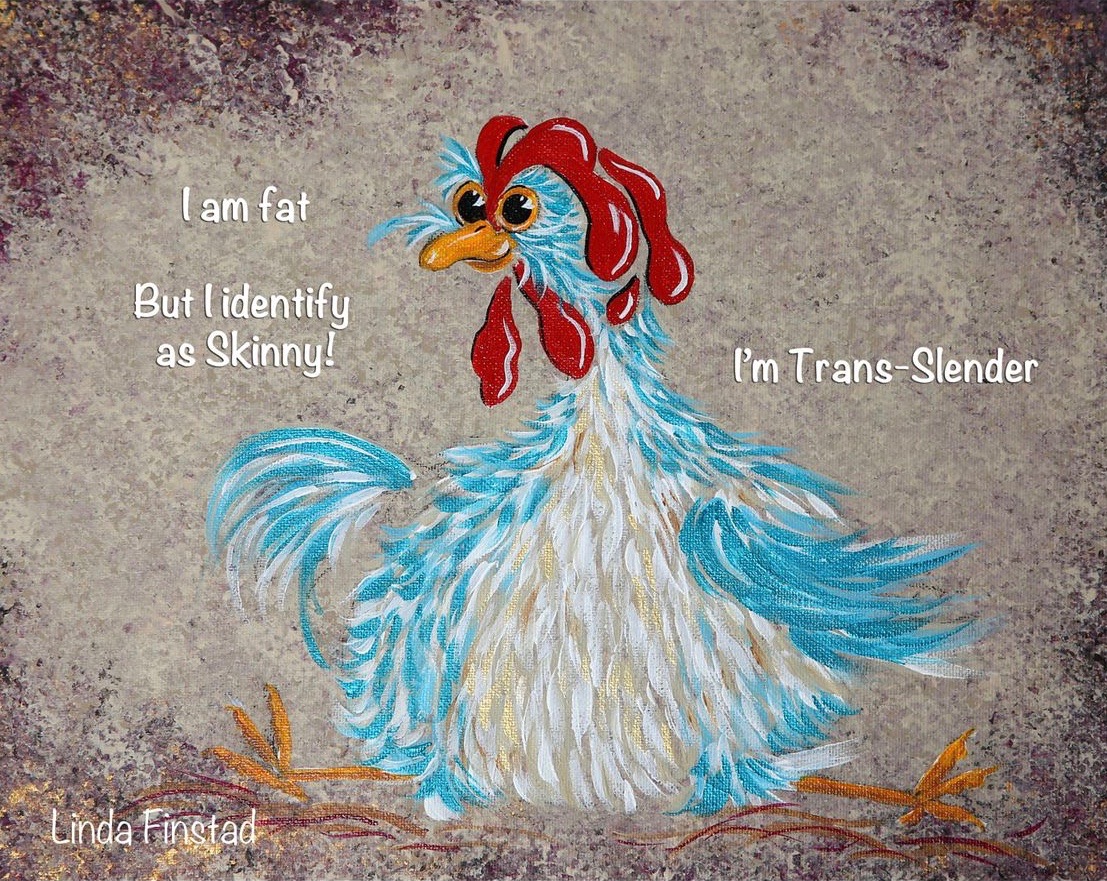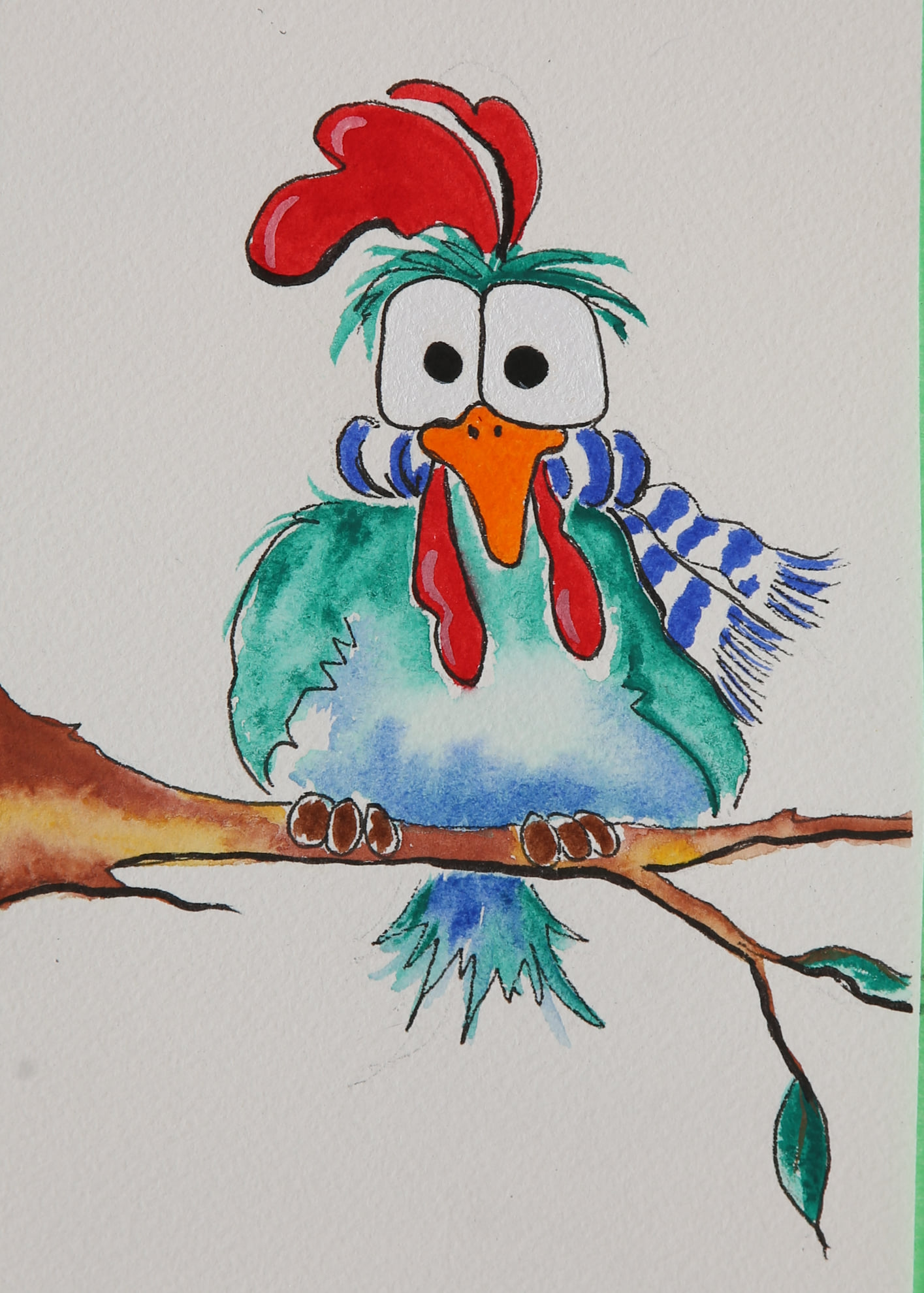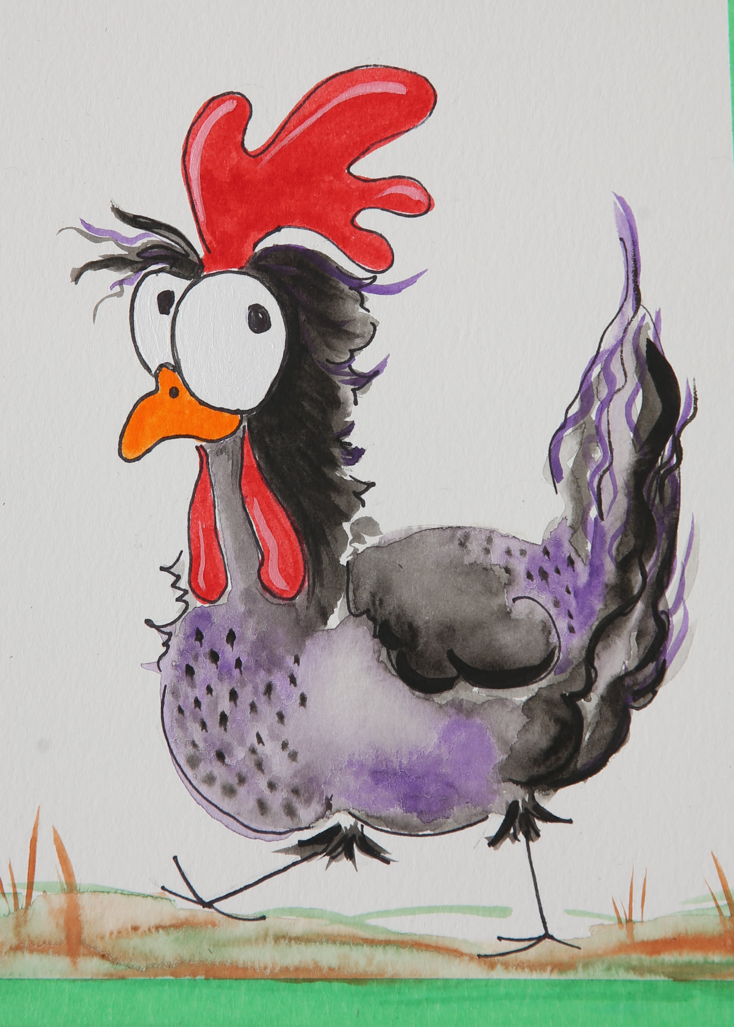 I am not sure if I identify with any particular artist or style. When you look at my art you will quickly realize I don’t feel the need to portray my subjects in true to life colours. The chickens I painted for my book “Chicken Wisdom” are all different colours.
