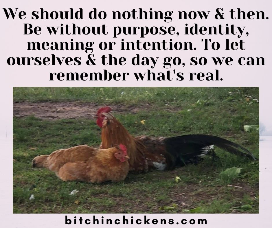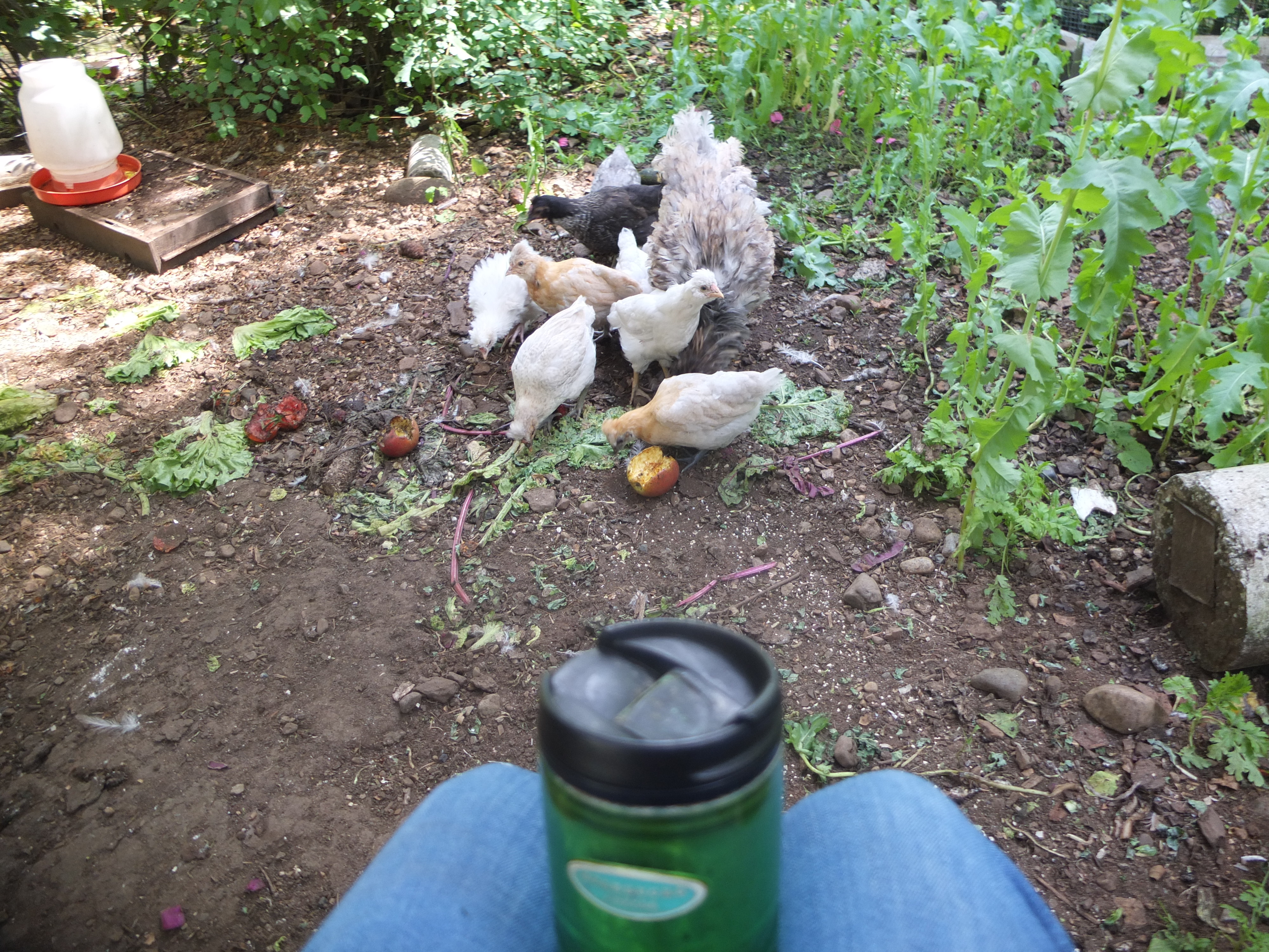Time spent with chickens gives us an excuse to gain some insight into the workings of their worlds while putting ours on hold. Sitting with them, a beverage in hand, is a ritual that reinforces the relationship between us and provides a much-needed break from the stresses of our daily lives.