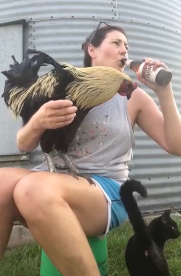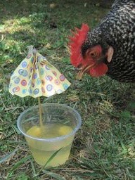 I would imagine that most chicken keepers have some kind of ‘happy hour’ with their birds, be it with a coffee or a beer, but we’ve never thought of that time spent as ‘drinking with chickens’. There actually is a blog (and book) named exactly that: a clever blend of cocktail mixology with the owner’s chickens peppered throughout the glossy photo shoots. I took a look at the author’s home – a beautifully renovated place in Los Angeles that looks like housecleaners and stagers are on standby to remove dust motes, the odd feather, or heaven forbid a misplaced chicken poop. With all her time spent whipping up fancy cocktails I can’t imagine also having time to shovel shit, deal with injuries, illness, broody hens, predators, inclement weather or all the fun stuff that comes with keeping birds. That type of sharing umbrella-topped bevvies seems more fitting for the urban millennials who fancy the idea of feathered pets than actually having them.