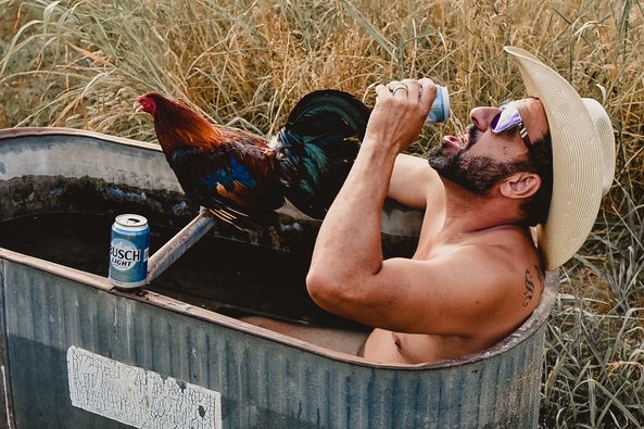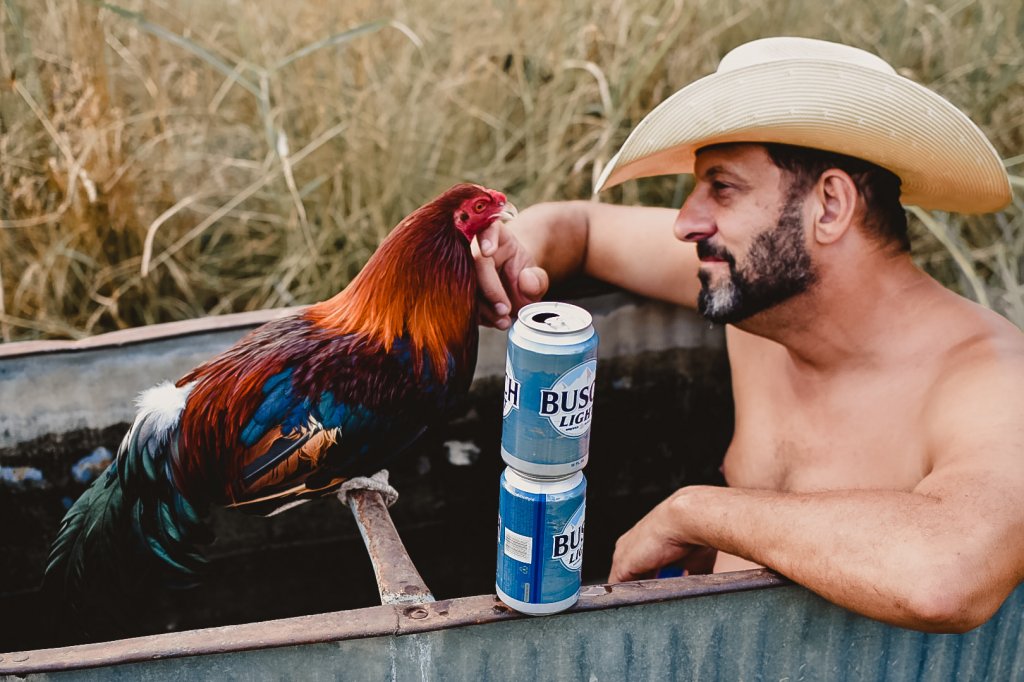 I was drinking a beer with my Japanese Game roo last night and he kept drinking what was left in the rim and got annoyed when I moved it away from him so he knocked it over and started drinking the bit that spilled while I reached for a towel. – Jessi Jay