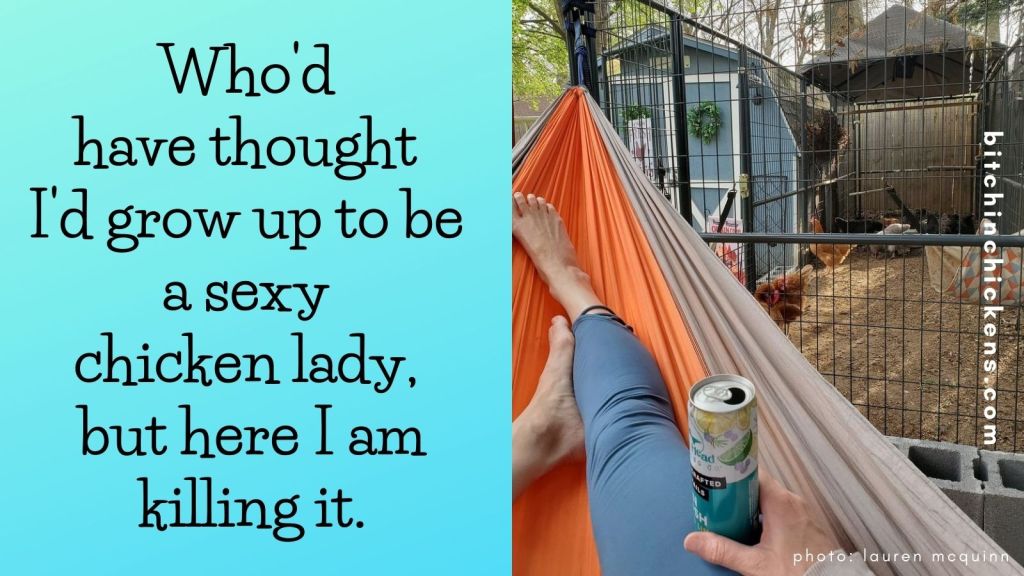 I thought we were all due for some levity to punctuate the low points of having birds. Of course, the rewards are worth it, especially the times when you can just hang out with your flock and enjoy them chickening with a beverage in hand.
