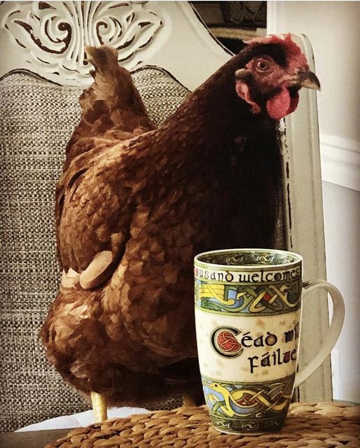 I guarantee that my place – an old 1940’s homestead on 4½ acres – wouldn’t pass muster by those standards, nor would I want it to. My house clearly says that a dog, cat and chicken farmers and gardeners live here. If I spent all my days dusting and polishing when would I have time for my flock? I squint so not to see the dust bunnies under the couch despite my frequent forays with the broom and instead choose to spend time with my girls. Some days their coop looks better than my livingroom. And at the end of a hard day at work or as a pick-me-up before the next task on the list I take a coffee out to sit with my girls.  Some of you might prefer harder libations and that’s okay too.