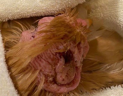• The area is inflamed. Cellulitis has gone into the ear canal and the infection has entered the subcutaneous tissue.