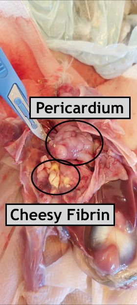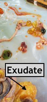 • The cheesy looking stuff (exudate) is from the infected oviduct