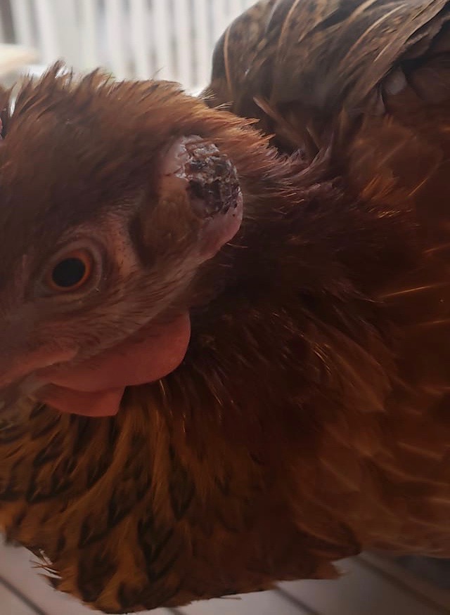 When I first showed Dr Bowes a photo of a chicken with a cutaneous horn (left) back in November 2021 she had no idea what she was looking at. Now she’s seen one she’s confident to say this is another case as well.