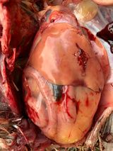 “Our rescue rooster was found in the road and we wondered if he’d been hit by a car, although there were no visible signs of trauma. He was always a little quirky; he had balance issues, seizures and would run into things. His vision was fine. Today he was lying in his cage with his head tilted all the back and I knew he was not going to recover. I performed a DIY necropsy on him and am interested in what was going on for him.” – Kelly Tomioka