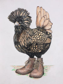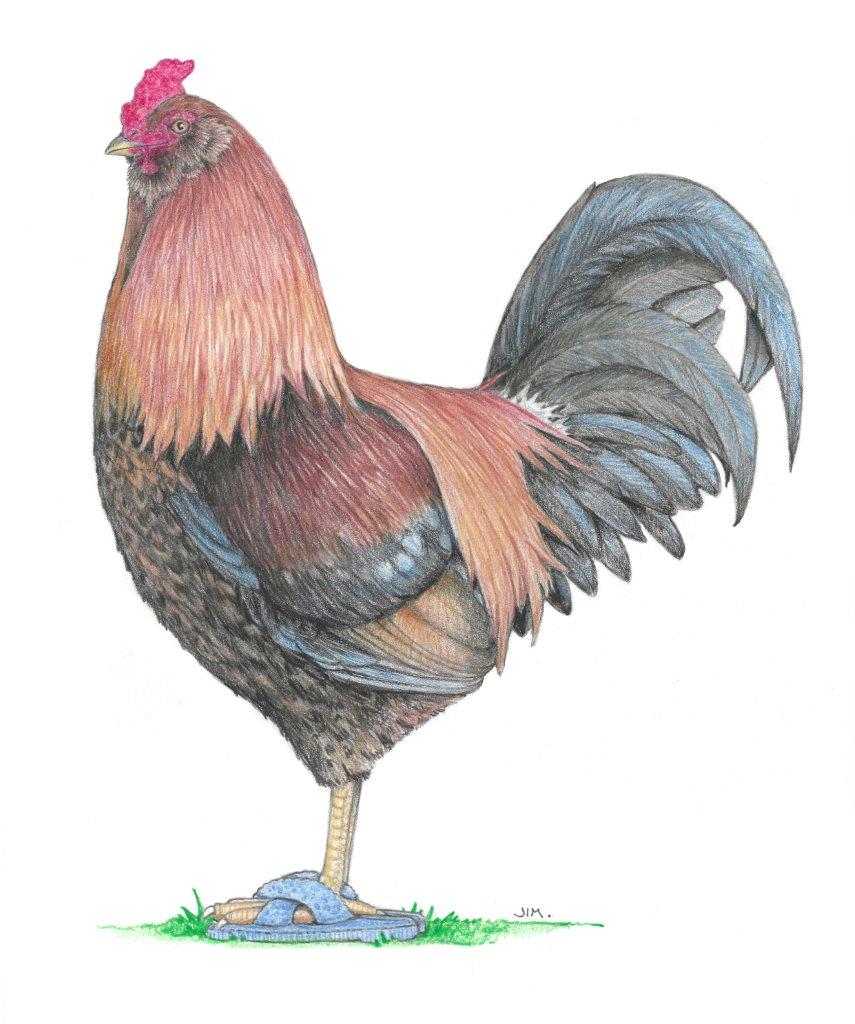 I came across one of Jim’s pictures in an online chicken group. I have to say I love his work, a unique combination of realistic illustrations with a twist. That his subject matter is birds is icing on the cake.